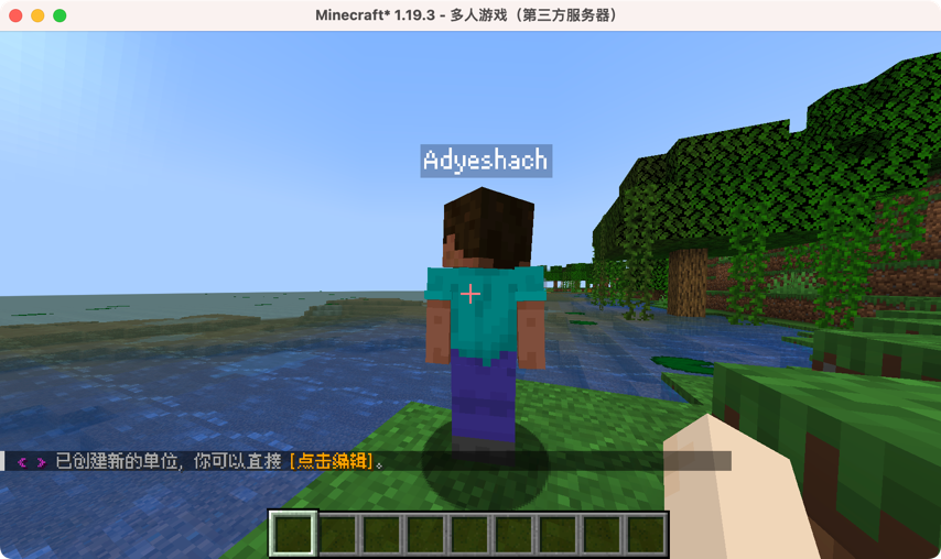 若无任何错误信息,插件会在玩家位置生成一个玩家类型的单位: